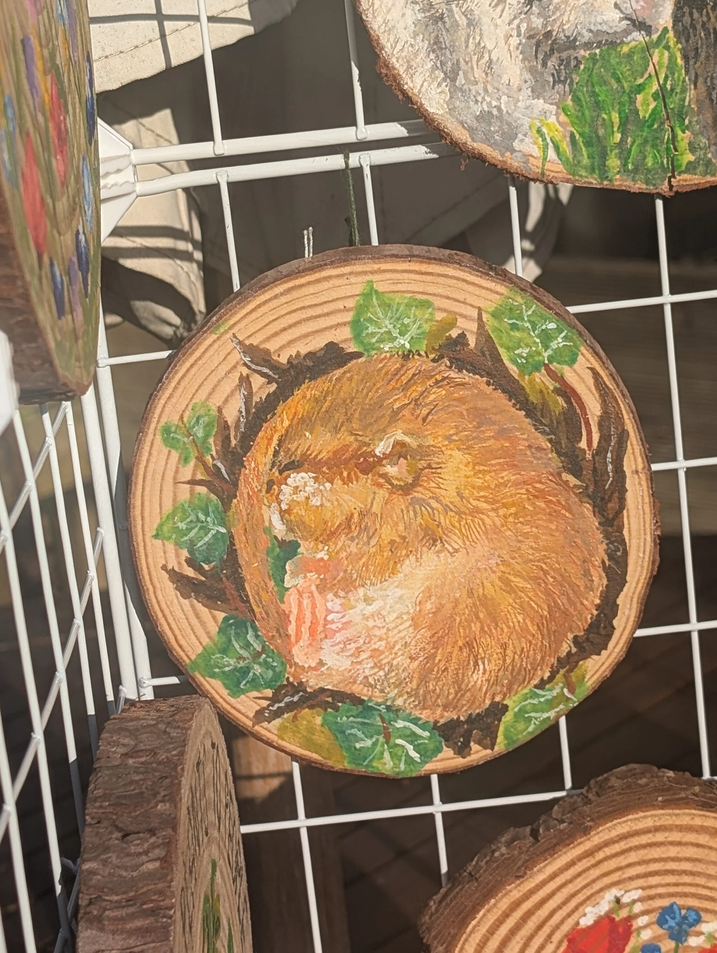 “Cwtch” – Hand-Painted Robin Wood Slice Art
